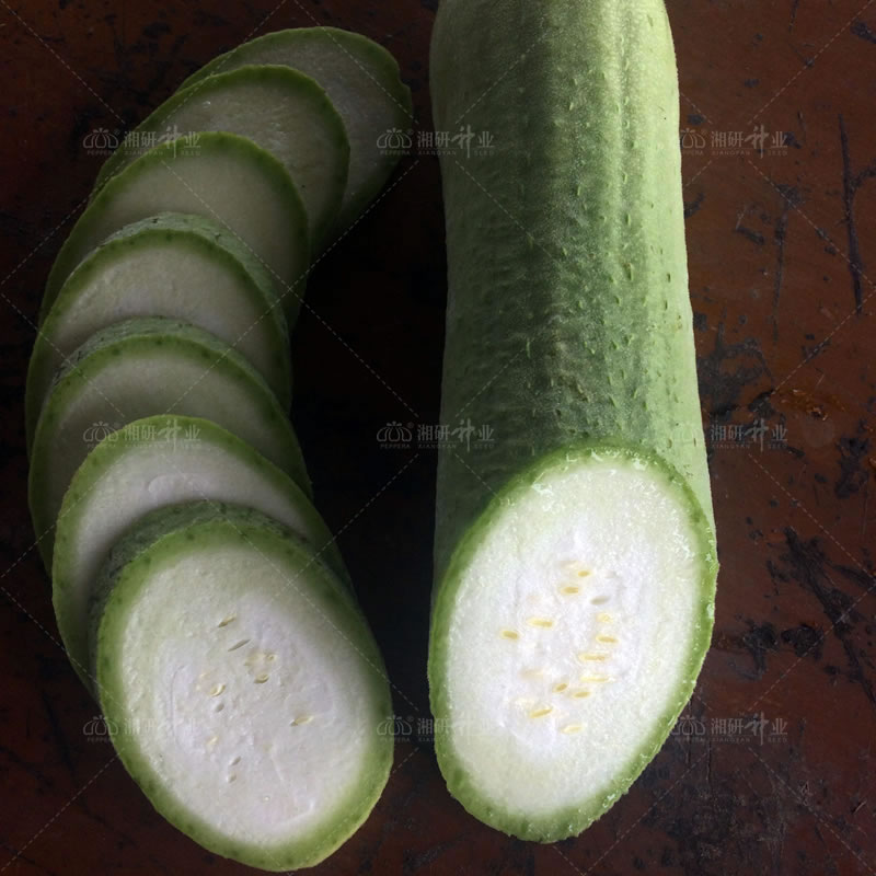 新一代早熟丝瓜新品种,第一雌花节位6节左右,蔓性,生长势强。雌花节率高,挂果能力强。果实长棒形,果长32cm左右,果径6cm左右,单果重550g左右,表皮黄绿色,肉质细嫩,硬度好,瓜味浓,瓜型匀直,瓜蒂较小,品质优,抗病性强。结瓜集中,整齐一致,转批快,采收头批瓜后,约5天左右可采收第二批瓜。