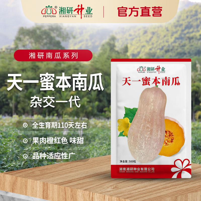杂交一代蜜本南瓜新品种,中熟,植株匍匐生长,全生育期110天左右,分枝能力强,第一雌花出现在17节左右。嫩果青绿色,成熟果橙黄色,果肉橙红色,味甜,耐储运,肉厚,正常气候和栽培管理条件下,前后期果实一致,平均单果重6-8kg左右,亩产一般在2000-3000kg左右,品种适应性广,全国各地均可栽培。