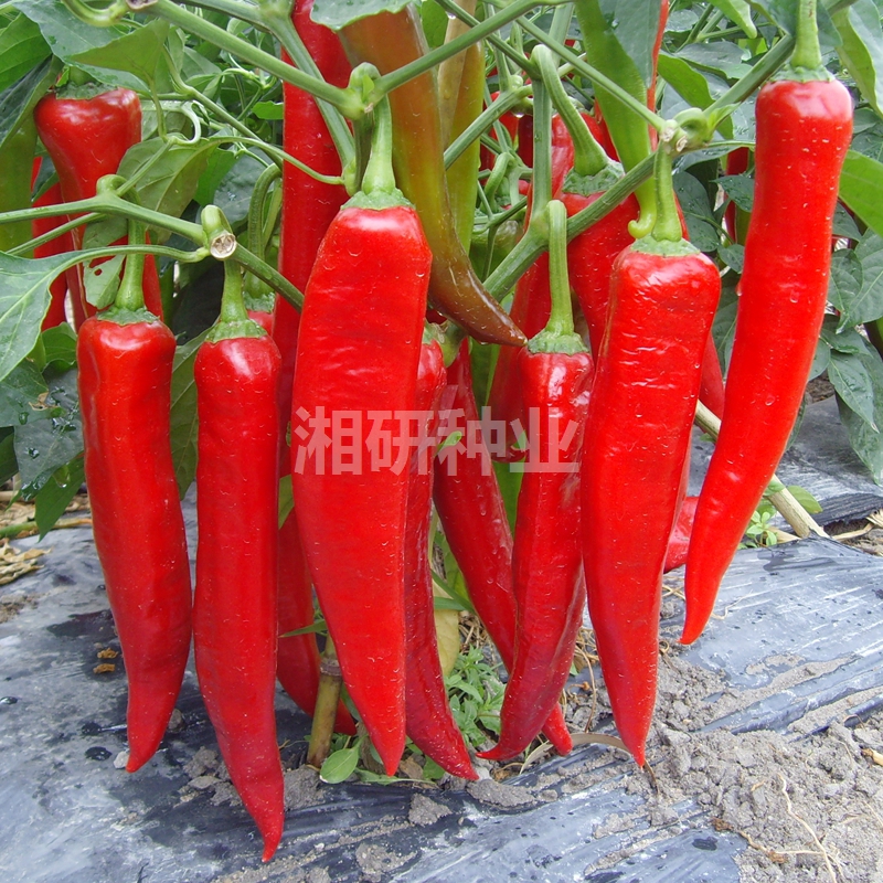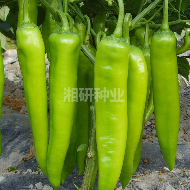 熟黄皮长牛角椒品种,生长势较强,开展度中等,植株枝条硬。果实长牛角形,果长约22-24厘米,果宽约4.0厘米,平均单果重约80克,果实黄绿色,果表光亮,顺直,红果鲜艳,果实硬度好,抗压,耐长途运输。连续结果能力强,抗衰老,后期果实长,抗病抗逆性强,采收期长,产量高。