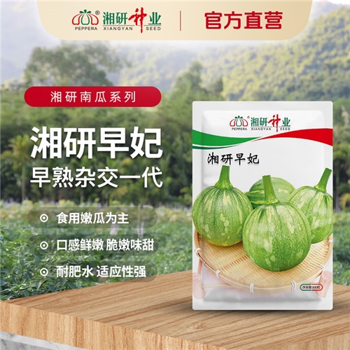 以食用嫩瓜为主的早熟杂交一代南瓜新品种,从出苗至嫩瓜始收30-45天。植株生长稳健,不易徒长,耐肥水,适应性强。着瓜较密,主侧蔓均可着生较多雌花,主蔓第一雌花出现在5-7节,一般可3-5瓜连续着生。嫩瓜高圆形,果皮淡绿色上覆间白色不规则花斑。坐果7-10天采收,食用嫩瓜单果重500g左右。口感鲜嫩,脆嫩味甜。