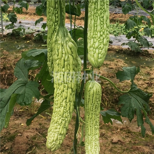 植株生长势强,早熟,主蔓结瓜为主,第一雌花节位7节左右,雌花节率高,节成性好,连续坐果能力强。果实长梭形,果皮翠绿色,突状瘤,果长32厘米左右,果径8厘米左右,平均单果重约450克左右。果肉较厚,肉质较脆,苦味中等,品质优良,紧实度好,商品性佳。