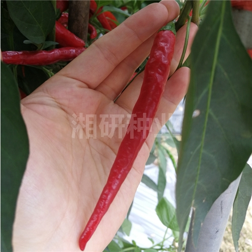 中熟、单生、易干制大果朝天椒品种,叶片小,叶色浓绿;果实前后期一致性好,易于采摘,辣味浓,易干,干后皱少,油分含量高,丰产潜力大;耐湿热,抗疫病及炭疽病能力强,适合作干椒加工。