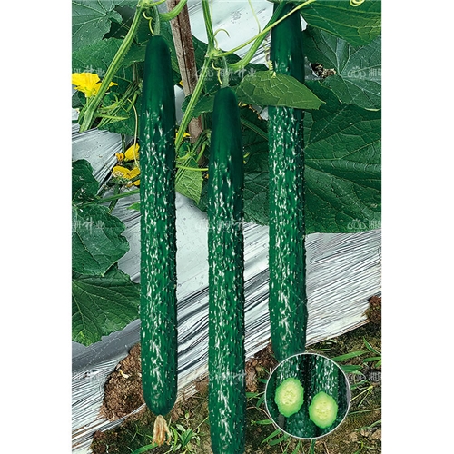 耐热,密刺型。瓜码适中,腰瓜长35厘米左右,把短条直,刺瘤明显,瓜身首尾匀称,瓜色深绿油亮,心腔细、果肉厚,果肉淡绿色。