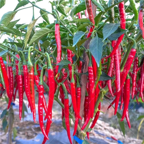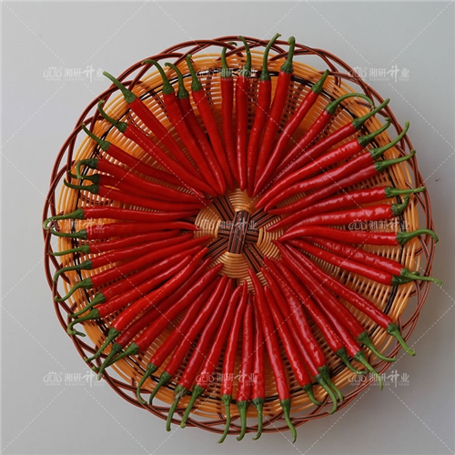 中早熟杂交一代小椒品种,果实朝下,小指形,果实顺直,光亮,青果为绿色,成熟果红色,红果易干,于后皱少,基本且能保持原来形状,味香辣,颜色好,油分含量高;抗疫病及炭疽病能力好,适合鲜食或干制加工。