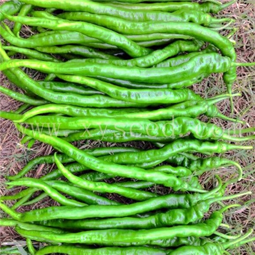 早熟、细长、螺丝线椒品种。植株生长势较强,株型紧凑,果实细长,果肩皱,螺旋;青熟果深绿色,红熟果红色,光亮,前后期果实一致性好,单果重25克左右,皮薄,味辣,品质好;耐低温寡日照能力强,坐果性好,连续挂果能力强,综合抗性好,适宜早春大棚栽培或秋延后栽培。